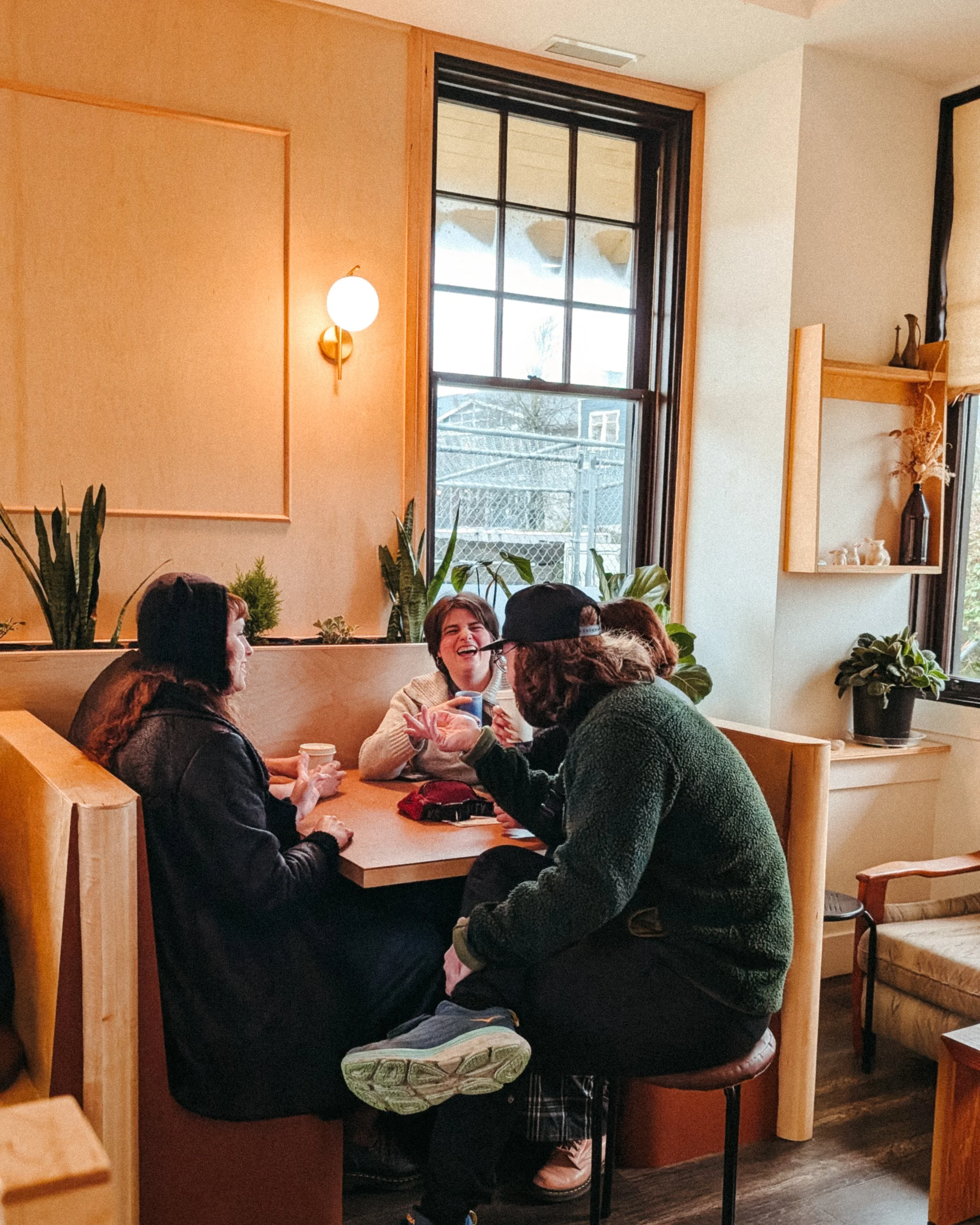 Great for casual meetings of up to four people — just grab a coffee and find a booth. We don't take bookings, first come first served. Heads up: it's a cozy space and voices carry.