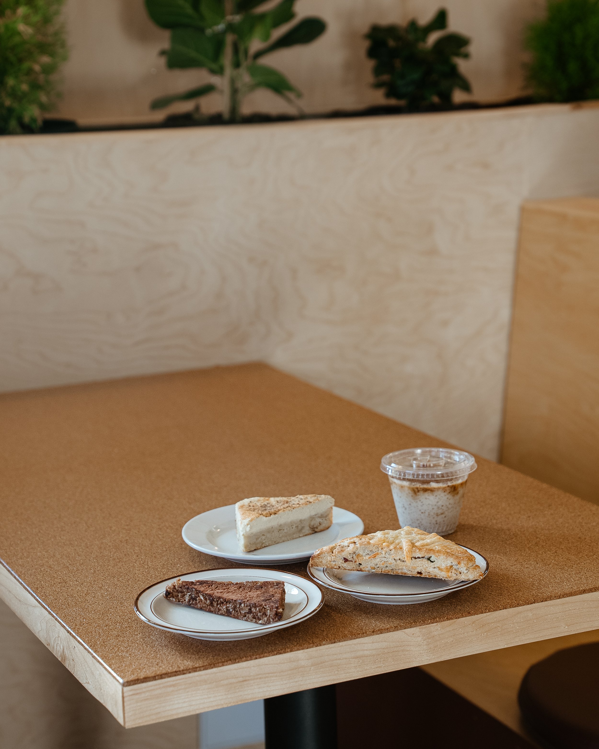 Most of our baked goods are gluten-free and vegan — not as a compromise, just how we make them. Our food is prepped fresh in advance so we aren't able to take modifications, but there's always a solid mix of gluten-free and vegan options across our sandwiches and salads.